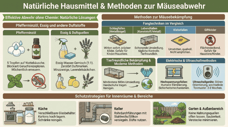 Doch keine Sorge: Mit natürlichen Lösungen lassen sich die Tiere effektiv und tierfreundlich fernhalten. Hausmittel wie Pfefferminzöl oder Gewürze bieten eine sanfte Alternative zu chemischen Produkten. So schützt man nicht nur die Umwelt, sondern auch Haustiere und Kinder.